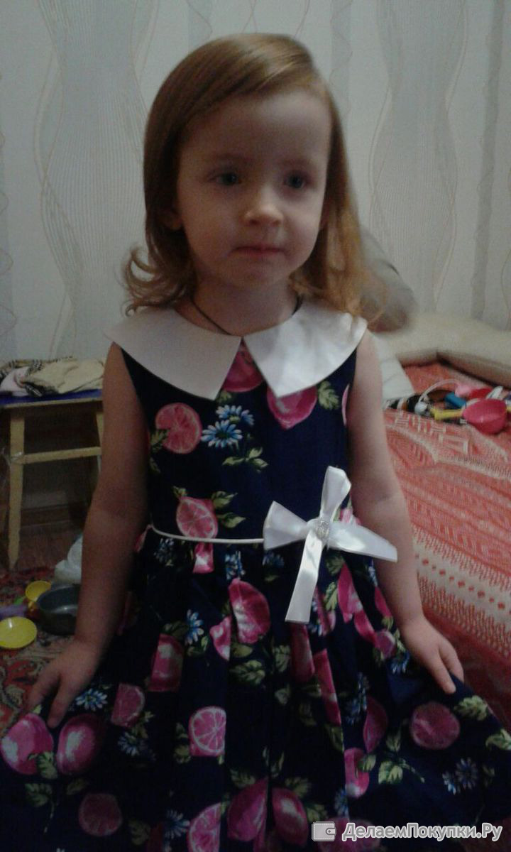 А это фото моей внучки. Через месяц нам исполнится 3 годика. Покупала три платья. Одно уже примерили. Два других будут подарены позже.