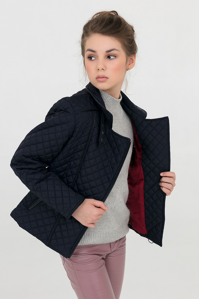 Куртка-косуха стеганая на открытую тесьму-молнию с внутренней ветрозащитной планкой.