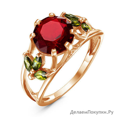 Позолоченное кольцо с фианитом цвета рубин - 541