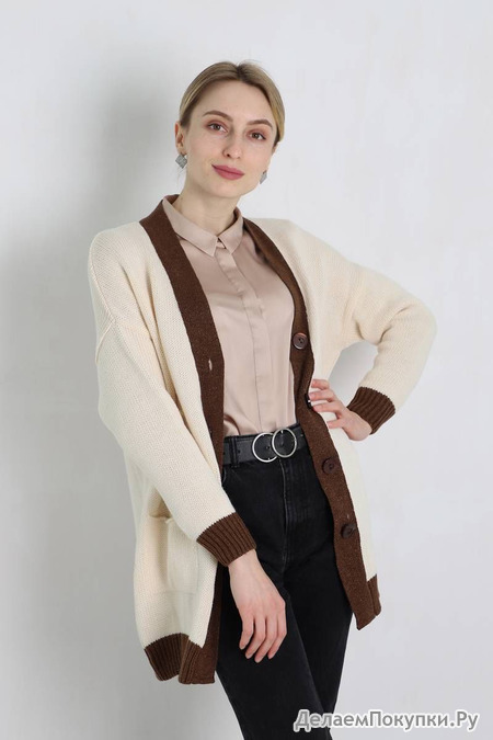 Кардиган Romgil артикул ТЗ379 молочный, темно-коричневый